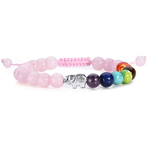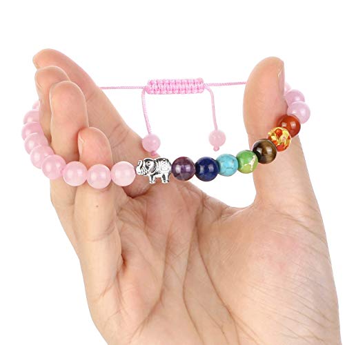 generic - سوار كريستال كوارتز روز للنساء، سوار كريستال بينك ريكي الشفاء 7 خرز شاكرا، سوار احجار على شكل فيل للحظ، مجوهرات ساحرة