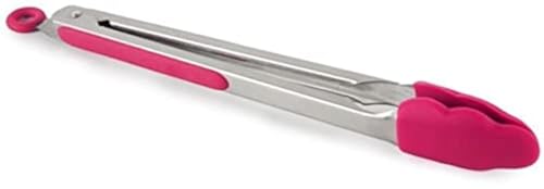 Generic - ملاقط شواء بمقبض من السيليكون والستانلس ستيل بلون احمر وردي 8100_ مع ضمان لمدة عامين للرضا والجودة