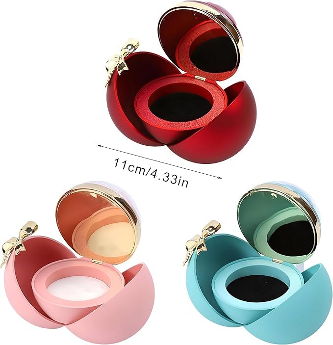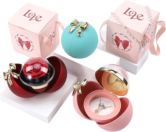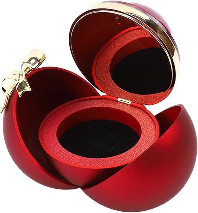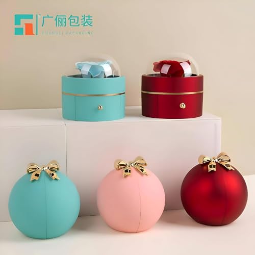 Generic - صندوق هدايا اكسسورات فيونكة خاتم الورد صندوق هدايا، علبة خاتم حمراء، صندوق خواتم كروية أنيق بتصميم فاخر على شكل وردة مثالية لعيد الحب وخطوبة عيد الميلاد