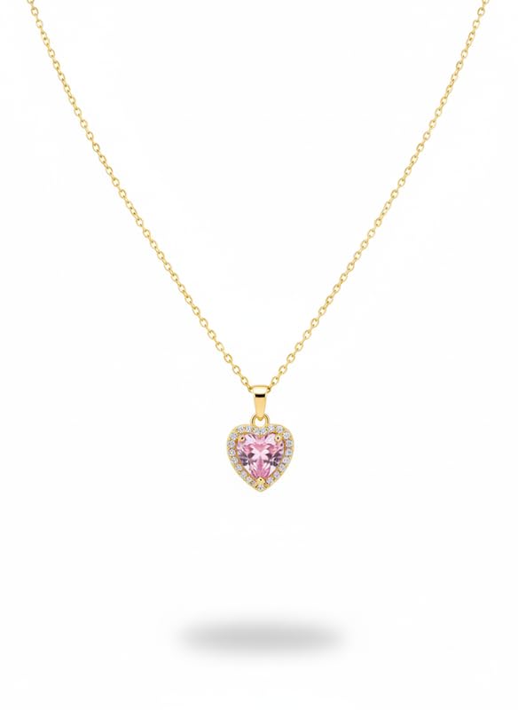 Generic - قلادة على شكل قلب بحجر وردي