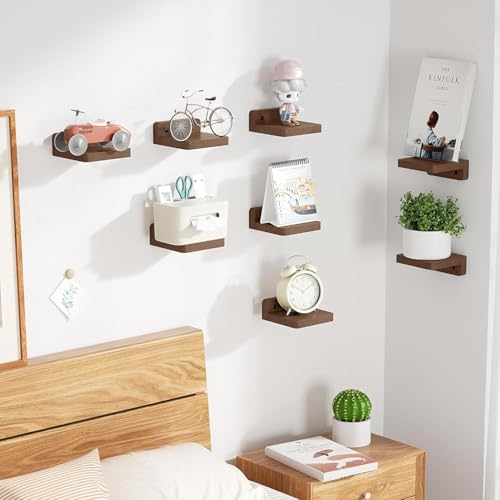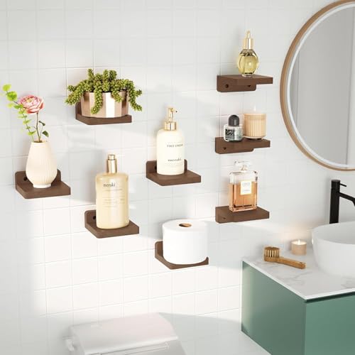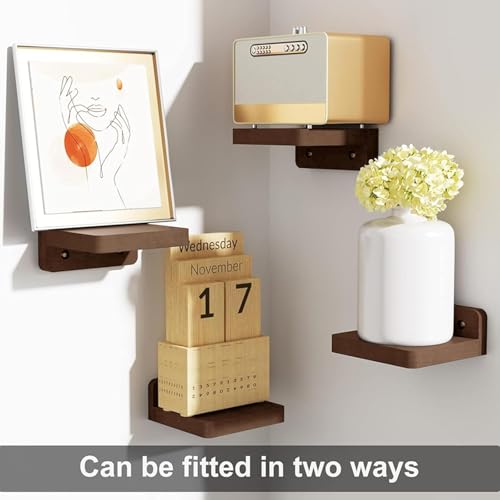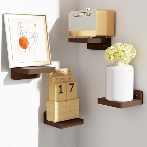 Rosebell - ارفف عائمة من الخشب صغيرة للحائط مزخرفة تثبت على الحائط لغرفة النوم وغرفة المعيشة والحمام من روزبيل، مجموعة من 4 أرفف، لون بني