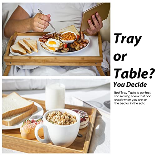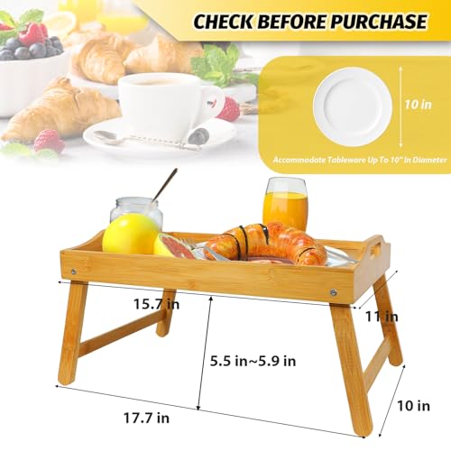 Roseeyo - طاولة صينية سرير من روزيو مع ارجل قابلة للطي فطور الخيزران بمقابض للسرير والاريكة وتناول الطعام والعمل وطاولة اللاب توب والطعام والوجبات الخفيفة مستدير طبيعي بلاستيك