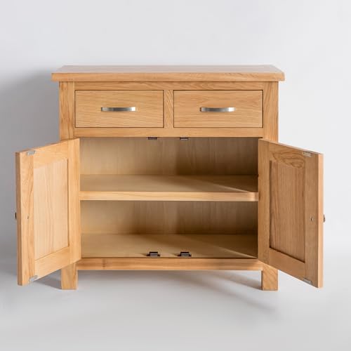 RoselandFurniture - دولاب جانبي صغير لندن من خشب البلوط للتخزين مع أدراج متين S رف لغرفة الطعام أو غرفة المعيشة الرواق روزلاند فيرنتشر مجمع بالكامل 75×75×32 سم ارتفاع×عرض×عمق بني