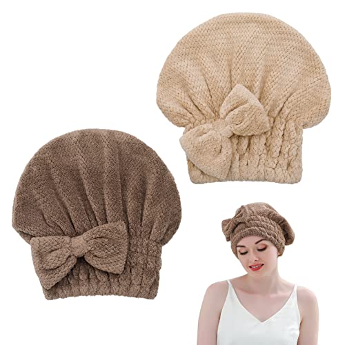 RosewineC - فوط تجفيف الشعر من المايكروفايبر روزوين سي قبعة وفوطة ملفوفة فائقة الامتصاص توفر تجفيفًا سريعًا للشعر المبلل والمجعد والطويل والكثيف مثالية للشاطئ والحمام وصالونات التجميل قطعتان نسيج الألياف الدقيقة