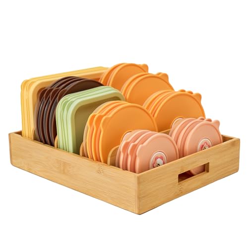 - 【مساحات تخزين قابلة للتخصيص】مع فواصل من الخيزران قابلة للتعديل تخلق أكثر من 5 مساحات لتناسب الأغطية من جميع الأحجام (على سبيل المثال، أغطية التوابل الصغيرة وأغطية الأواني الكبيرة) وتتكيف مع أدراج المطبخ أو الخزانات. تم تصميم الفواصل لحمل أغطية الأواني والمقالي بشكل منظم أكثر.