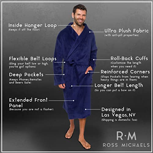 Ross Michaels - روس مايكلز روب رجالي بقبة شال ملفوفة - روب حمام من الصوف المخملي متوسط الطول