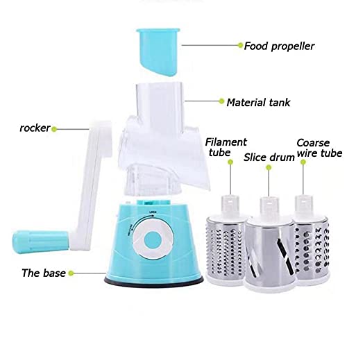 Spaceshoop - مبشرة جبن دوارة، قطاعة شرائح للخضروات والمطبخ مزودة بـ 3 شفرات قابلة للتبديل، مبشرة دوارة سهلة التنظيف للفاكهة والمكسرات، لون أخضر