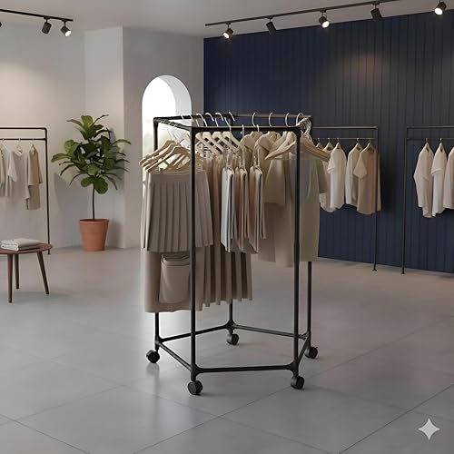 Generic - رف ملابس دوار متحرك مع 5 عجلات وفرامل، هيكل معدني متين، تصميم دائري للاستخدام الأمثل للمساحة، مثالي للسكن الجامعي