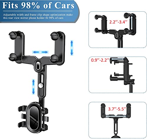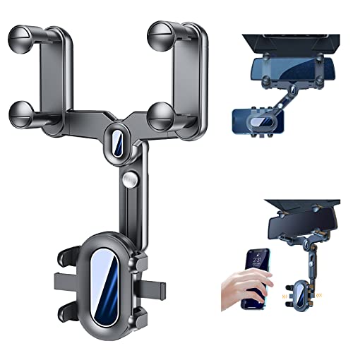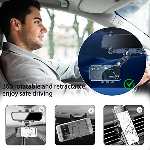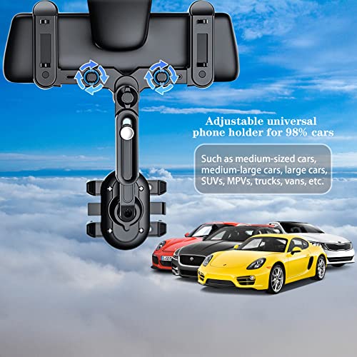 YOILES - حامل موبايل للسيارة قابل للدوران والسحب، حامل موبايل عالمي لمراية الرؤية الخلفية للسيارة متعدد الوظائف مع دعامة تركيب يدور 360 درجة