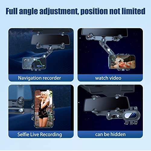 - 【استخدام واسع】يمكنك استخدامه للتنقل وإجراء مكالمات الفيديو والبث المباشر وتسجيل مقاطع الفيديو وسجلات القيادة وغيرها. يمكن تخزين حامل الموبايل لمراية السيارة وإخفاؤه عند عدم الاستخدام، لذلك لن يتداخل مع رؤيتك ولا يؤثر على سلامة القيادة.