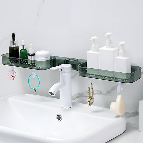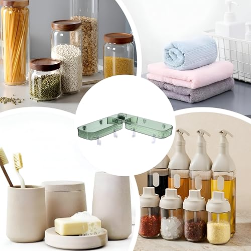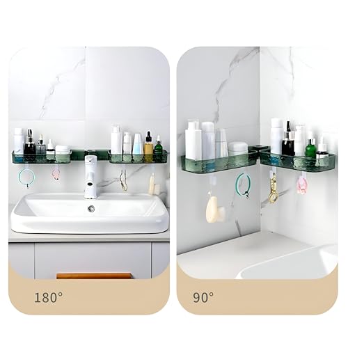 Generic - رف حمام دوار - تخزين مثبت على الحائط بلون اخضر مع لاصق قوي، 62.5 × 11 × 4 سم، يحول مساحة الزاوية الى تخزين عملي للاستحمام.