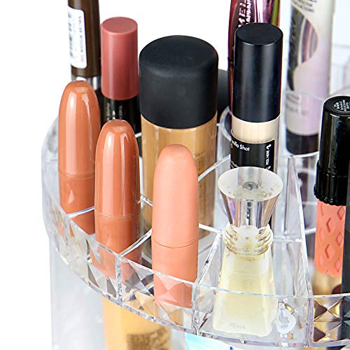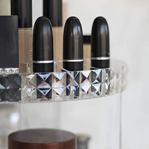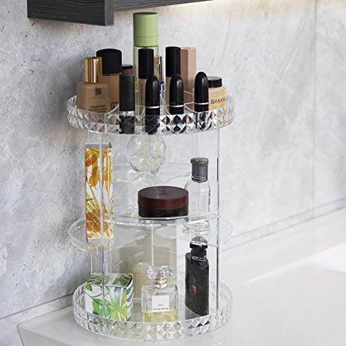 Pukkr - منظم مستحضرات تجميل دوار، حامل مكياج دوار 360 درجة لتخزين أدوات الزينة والحمام وغرف النوم، حامل عرض مصنوع من الأكريليك من بوكر