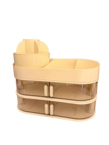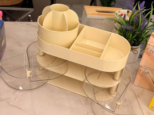 Generic - منظم مستحضرات التجميل الدوار مع ٤ أدراج، منظم فرش أكريليك شفاف، بيج