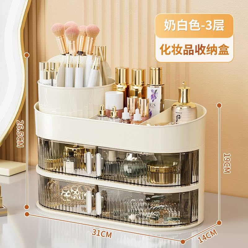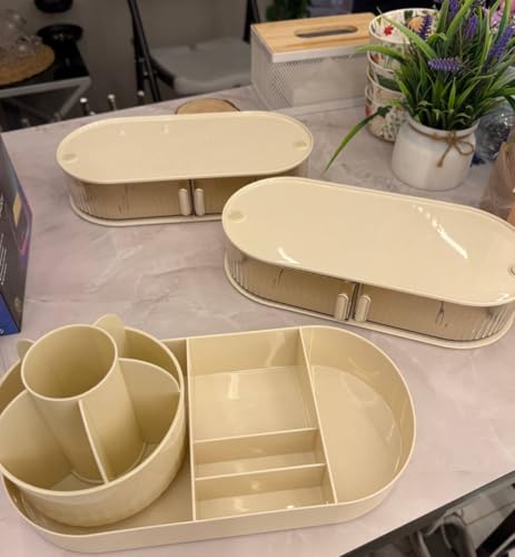 - اللون والشكل: تصميم أنيق باللون البيج مع أدراج شفافة تسهل رؤية المحتويات