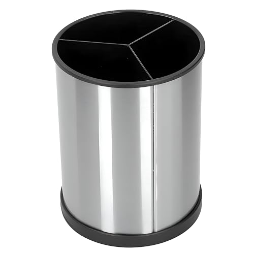 generic - تخزين ادوات المائدة الدوارة - صينية من 3 اقسام من الستانلس ستيل مع قاعدة ثقيلة لتحقيق الثبات، لمسة نهائية فضية موفرة للمساحة لتنظيم المطبخ بكفاءة