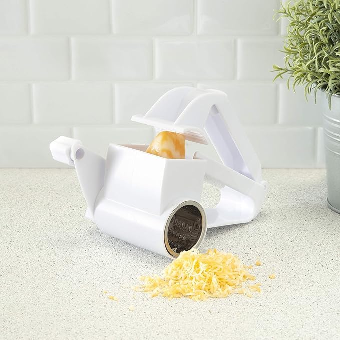 Generic - مبشرة يدوية دوارة للجبن والشوكولاتة والجبن والشوكولاتة والمكسرات | شفرة من الفولاذ المقاوم للصدأ، اسطوانة كبيرة، قابلة للتعديل لمستخدمي اليد اليمنى واليسرى (عبوة قطعتين)
