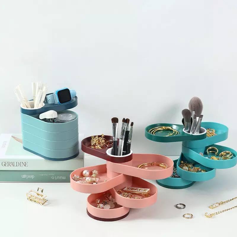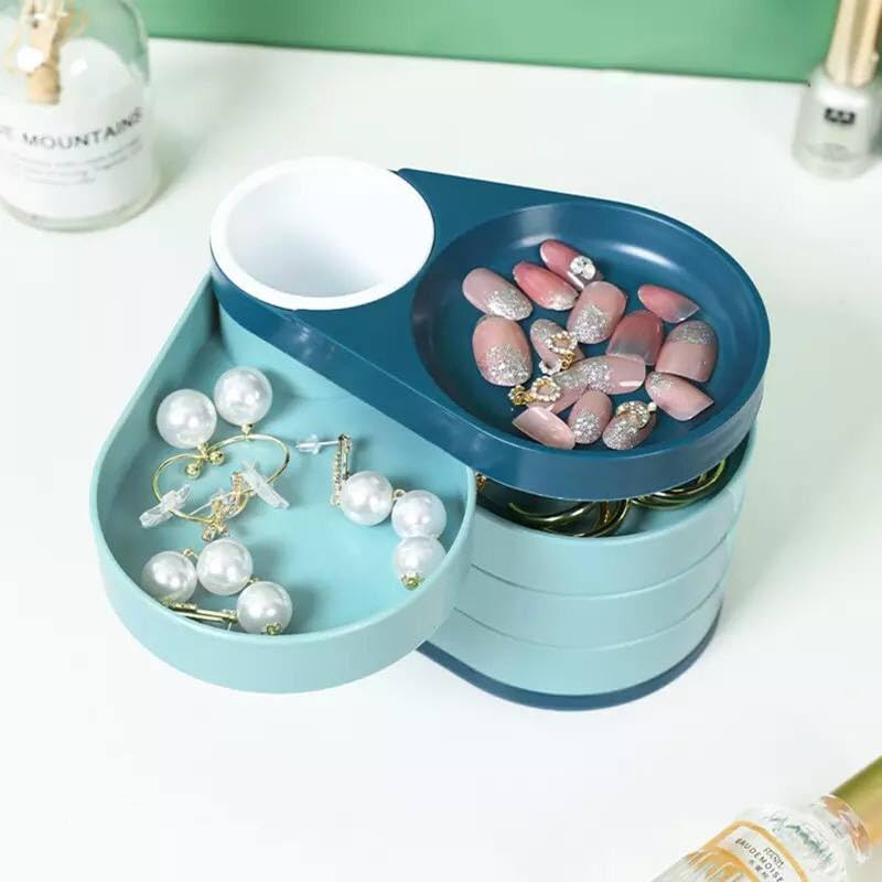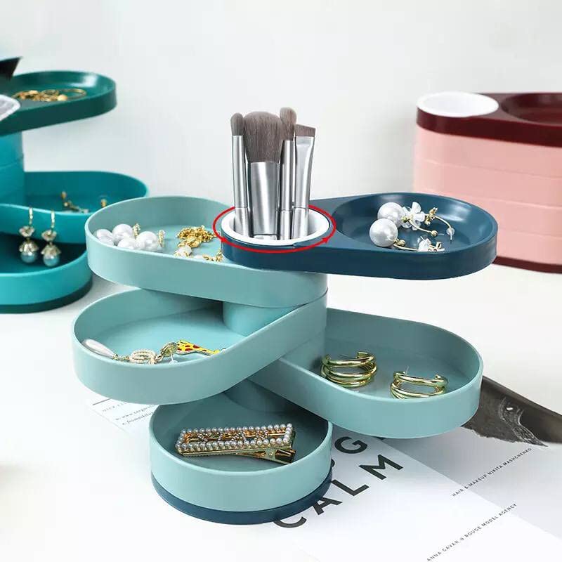 - صندوق تخزين المجوهرات الدوار: صندوق تخزين المجوهرات يدور 360 درجة مع 5 طبقات من الأقراط، والتي يمكن تدويرها إلى أي زاوية حسب الرغبة. يمكن لصندوق المجوهرات المطوي بعناية مع الغطاء أن يعزل الغبار ويحافظ على بريق المجوهرات بشكل أفضل. صندوق المجوهرات هو محطة تزيين رائعة.