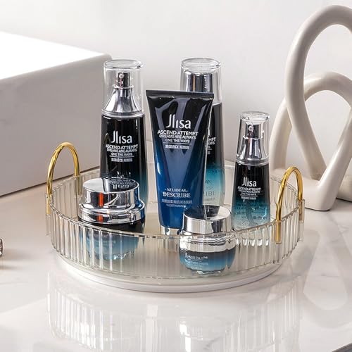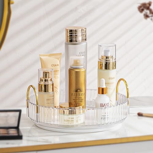 Zufudo - منظم مكياج دوار ليزي سوان، صينية لتنظيم العطور ومستحضرات العناية بالبشرة لطاولة الحمام من زوفودو (شفاف)