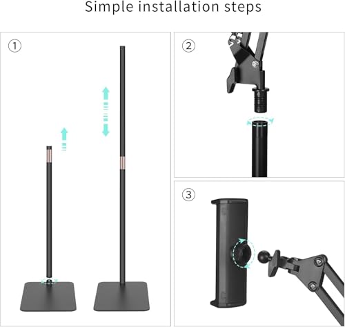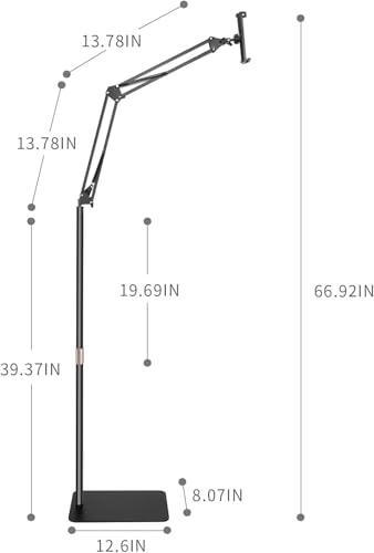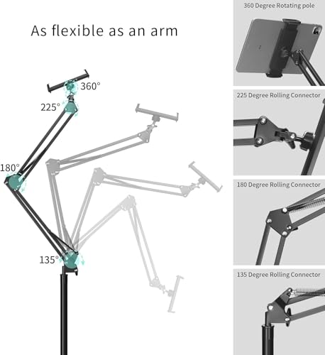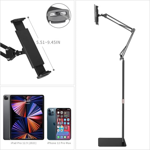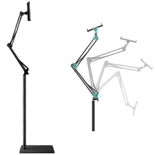 H-Home - حامل أرضي معدني دوار قابل للتعديل زاوية قابلة بذراع طويل مرن من الألومنيوم عالمي للطي 360 درجة متوافق مع اي موبايل &&& تابلت ايه بي دي كيندل أسود...