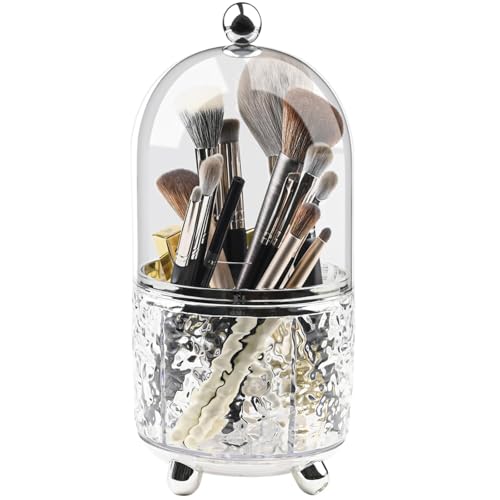 Generic - منظم دوار - حامل فرش مكياج شفاف مقاوم للماء والغبار بزاوية 360 درجة مع غطاء للتخزين الأنيق وسهولة الوصول، حامل ادوات التجميل متعدد الاستخدامات لطاولة الزينة والخزائن