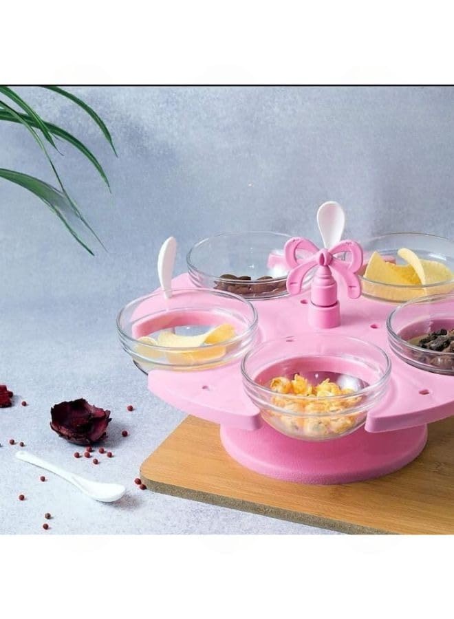 Generic - طبق وجبات خفيفة دوار من 5 بولات مع ملاعق، بلاستيك، بنفسجي، عدد القطع: 1