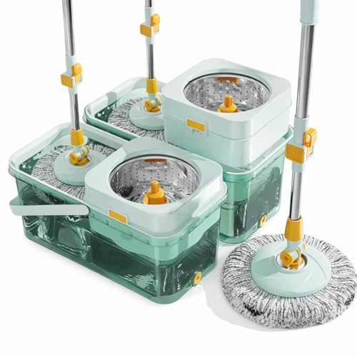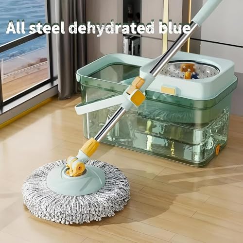 Generic - مجموعة ممسحة دوارة ودلو مع هيكل من الاكريليك، نظام عصر 360 درجة، 2 عبوة اعادة تعبئة من المايكروفايبر، مقبض ستيل قابل للتعديل لتنظيف ارضيات المنزل والمطبخ والحمام