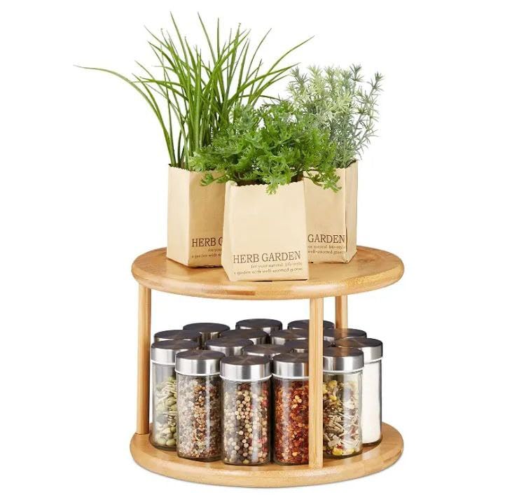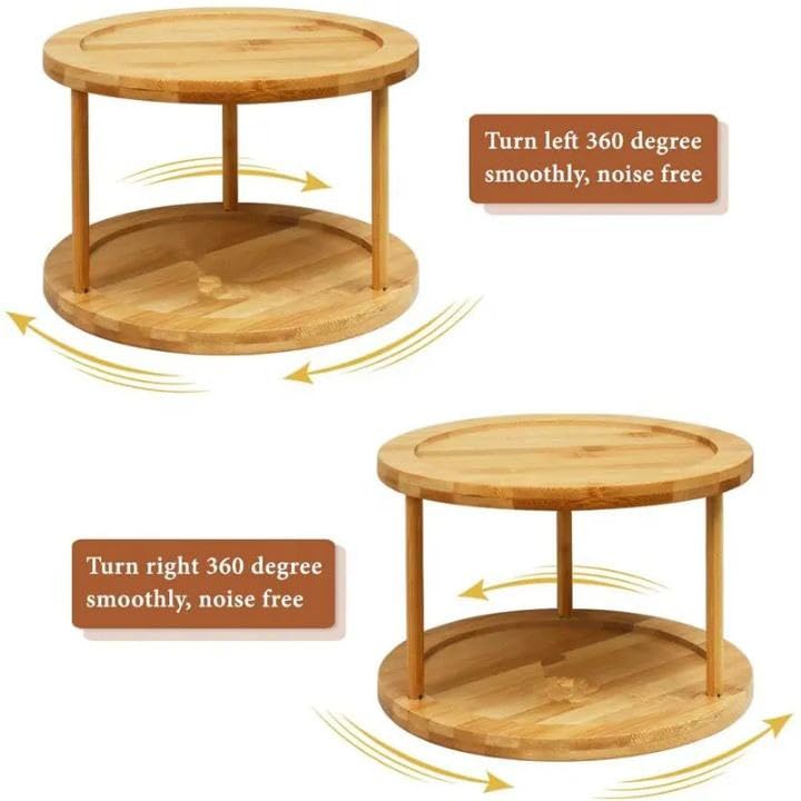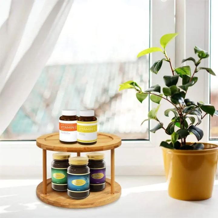 Generic - حل تخزين دوار - منظم خشبي انيق من طبقتين مصنوع من الخيزران المعالج، مثالي لتنظيم برطمانات التوابل وحاويات العناية بالبشرة ومقاوم للماء والبكتيريا (1)