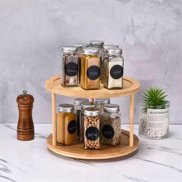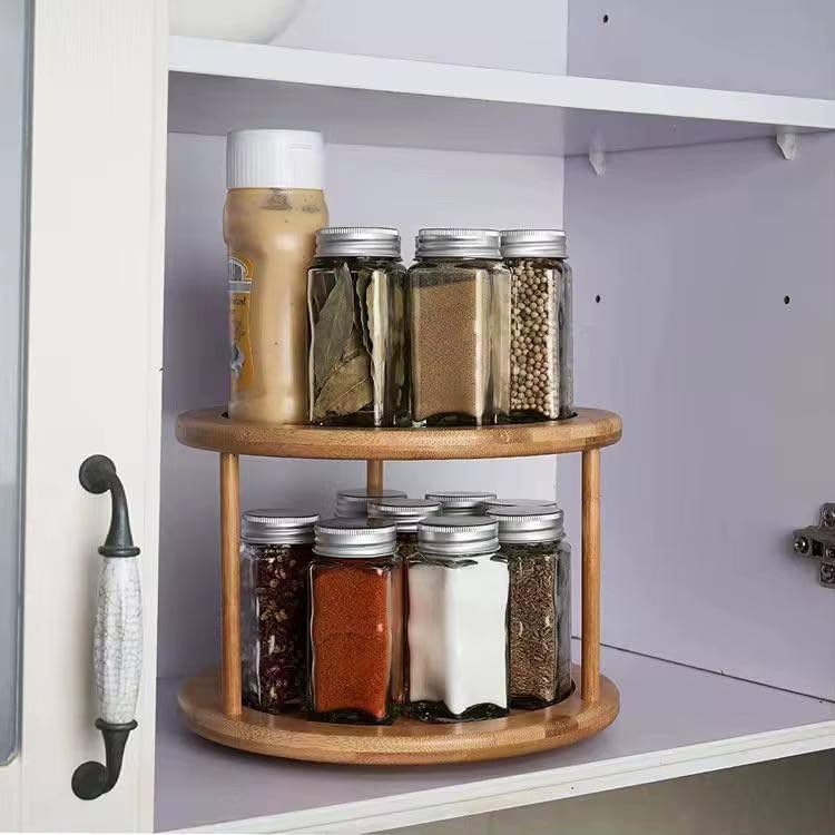 - تصميم دوار 🔄: منظم خشب دوار 2 دور يوفر لك تنظيمًا رائعًا للمطبخ أو التسريحة بكل سهولة.