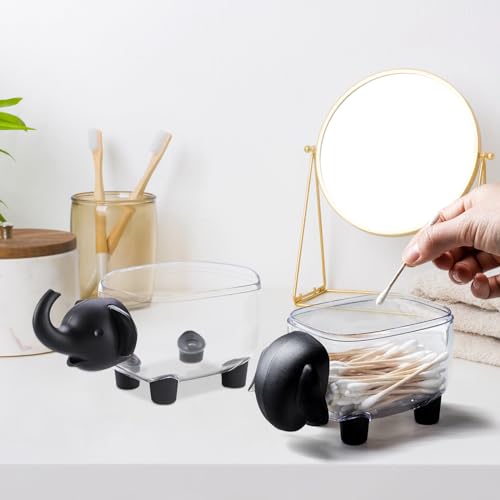 - 【محتويات العبوة】 ستحصل على 2 علبة تخزين شفافة لحمل أعواد القطن باللونين الأسود والأبيض الكلاسيك، تتميز بأشكال فيل رائعة. إنها ليست مجرد ديكور ساحر ولكنها أيضًا منظم عملي لمستلزمات التجميل الخاصة بك.
