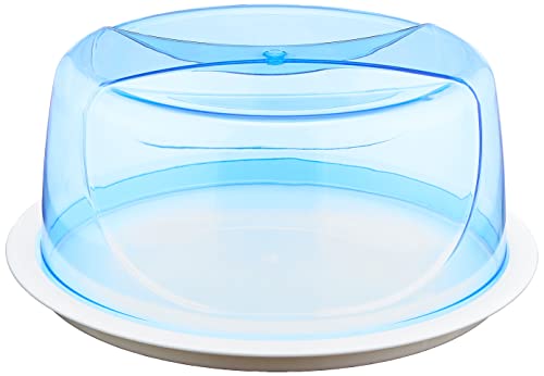 bager - حافظة تورته دائريه اكريليك شفاف بقاعده ملونه (34*15 سم) - ازرق * ابيض