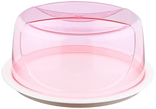 bager - حافظة تورته دائريه اكريليك شفاف بقاعده ملونه (34*15 سم) - روز * ابيض