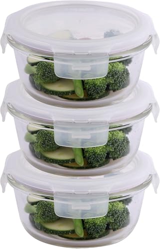 AREXOL - مجموعة حاويات تخزين طعام دائرية من الاكريليك مكونة من 3 قطع مع اغطية قفل بمشبك سعة 160 مل، صناديق شفافة لتنظيم الثلاجة للمطبخ وبقايا الطعام والصلصات واعداد وجبات الجبن
