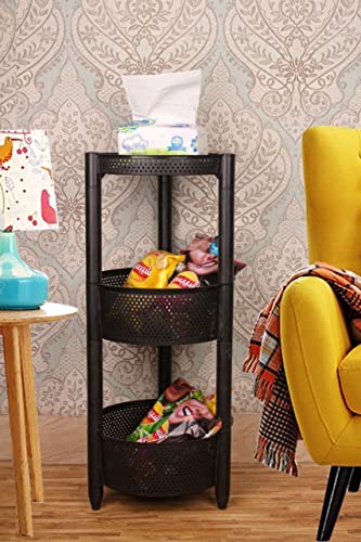 Generic - تربو تخزين دائري بنمط مخرم 3 مستويات (قاعدة دائرية (أسود)