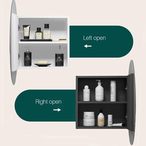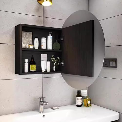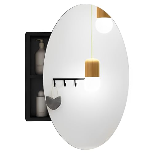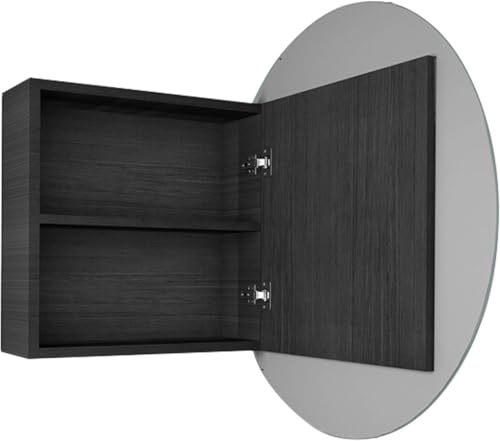 Generic - خزانة دائرية سوداء بمراية للحمام أو غرفة النوم - مراية مستحضرات تجميل مثبتة على الحائط مع مساحة تخزين مخفية - منظم رف تخزين للحمام - مقاس 40 × 40 سم