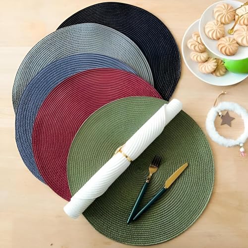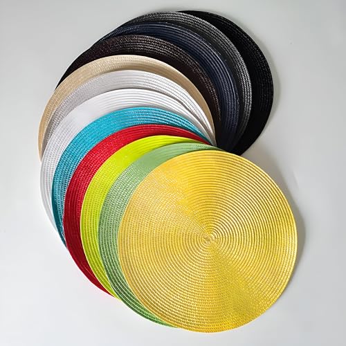 - هذه المفارش الكبيرة المضفرة المستديرة مقاس 38 سم مصنوعة من مادة البولي بروبيلين عالية الجودة، مما يجعلها متينة وسهلة التنظيف، مثالية لحماية طاولتك من الانسكابات والبقع أثناء الوجبات أو التجمعات.