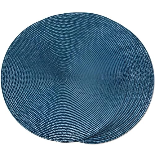 Generic - مفارش دائرية مضفرة - مقاس كبير 38 سم مع سطح سهل التنظيف وقابل للمسح، مثالية لتناول الطعام في الاماكن المغلقة والمفتوحة، تصميم زهور مبتكر، ازرق داكن، مجموعة من 4 قطع (15 قطعة)