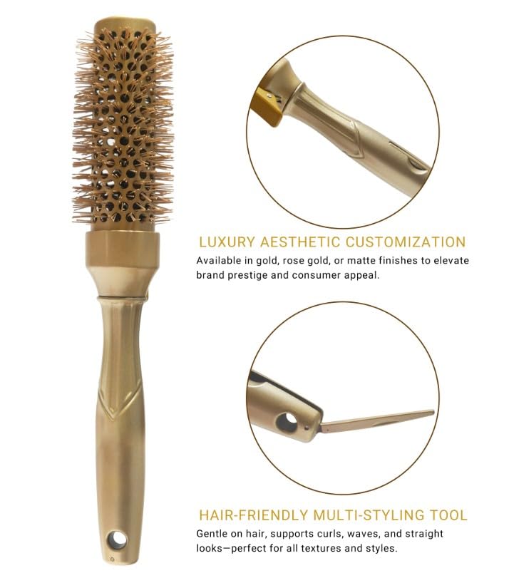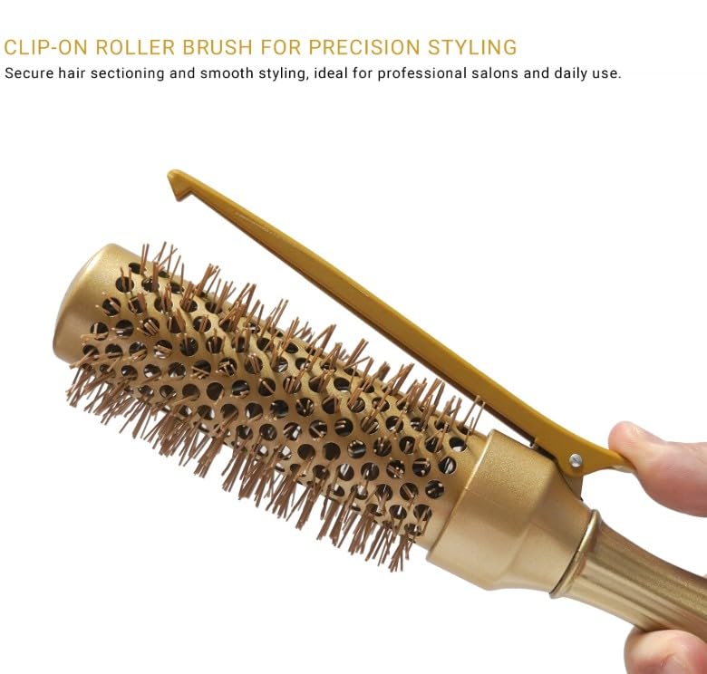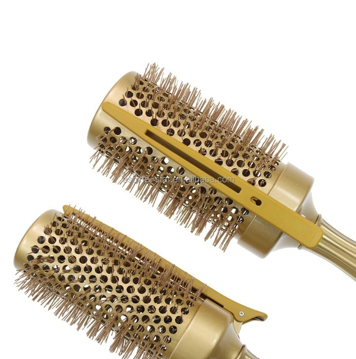 Generic - فرشاة دائرية متعددة الوظائف مع مشبك شعر واداة فصل ذيل مدبب، فرشاة شعر احترافية لتصفيف الشعر وتجعيد الشعر، لون ذهبي (مقاس 43 ملم)
