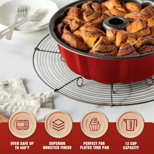 AREXOL - قالب كيك دائري مع مركز مجوف مثالي لخبز الكيك المنزلي المنفوش، صينية مطلية غير لاصقة للاستخدام في الفرن، سهلة الغسل واعادة الاستخدام اليومي