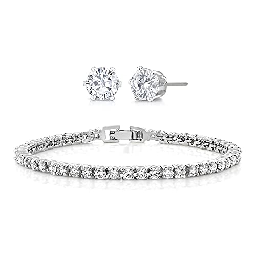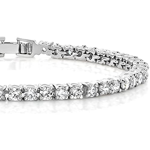 Generic - سوار تنس نحاسي دائري مرصع بالزركونيا المكعب والزركونيا المطلي بالروديوم مقاس 7 بوصة مع مسامير 6 ملم من جوليا ستور عرق اللؤلؤ مرجاني معدن - متعدد الألوان