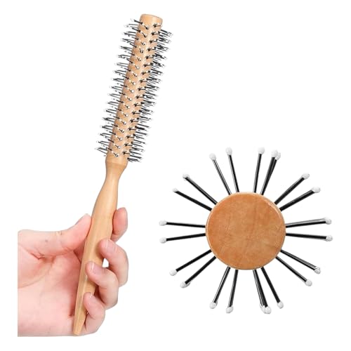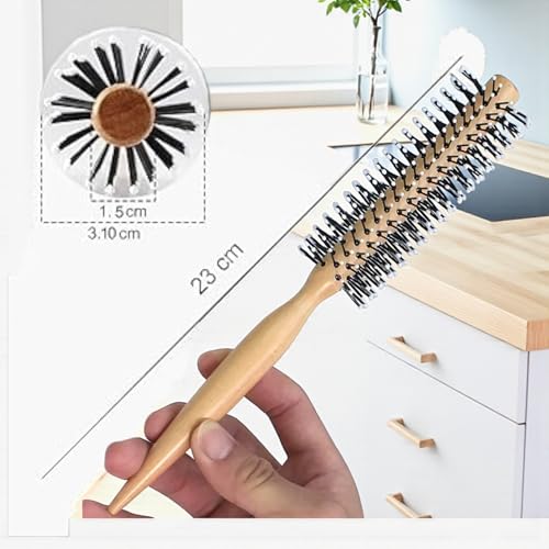 Generic - مشط تجعيد شعر دائري بيد خشبية من خشب الزان الطبيعي وشعيرات نايلون ناعمة، فرشاة شعر لجميع تصفيفات الشعر، عرض 3 سم وطول 23 سم