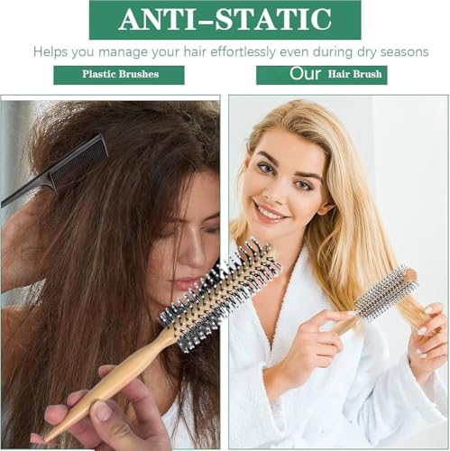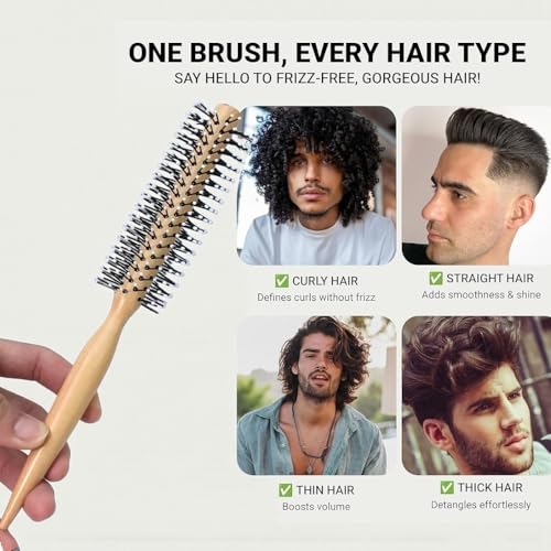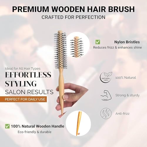 - تصميم مقاوم للحرارة: التكوين الذي يجمع بين يد خشبية وشعيرات نايلون يوفر استخدامًا آمنًا مع مجففات الشعر للحصول على نتائج بدرجة احترافية في المنزل.