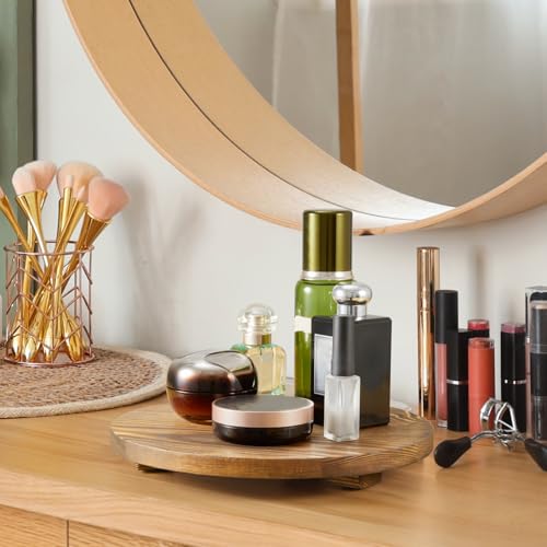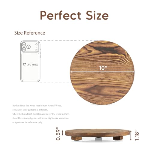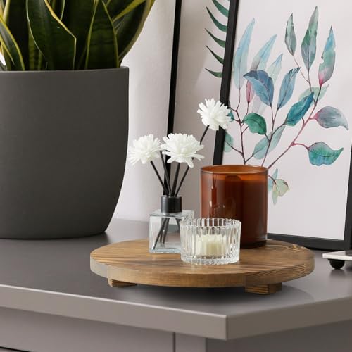 ZMZKKLL - صينية ديكور دائرية بقاعدة خشبية محروقة لديكور المنزل الريفي والحمام والمطبخ وحامل صابون للزينة والمنضدة والحوض، لون بني، مقاس 25.4 سم