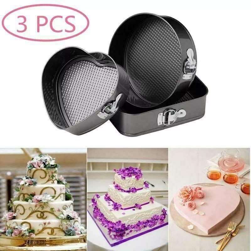 Generic - طقم قوالب كيك دائرية قابلة للفصل، ٣ قطع، لون أسود، قاعدة مضلعة غير لاصقة