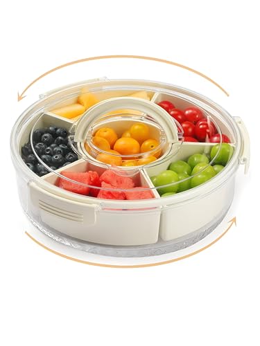 Generic - علبة فواكه مجففة دائرية - صينية دوارة أنيقة مع غطاء قفل ومقبض مريح، مصممة للوجبات الخفيفة الصحية مثل المشمش والتوت البري والتين؛ صغيرة وأنيقة.