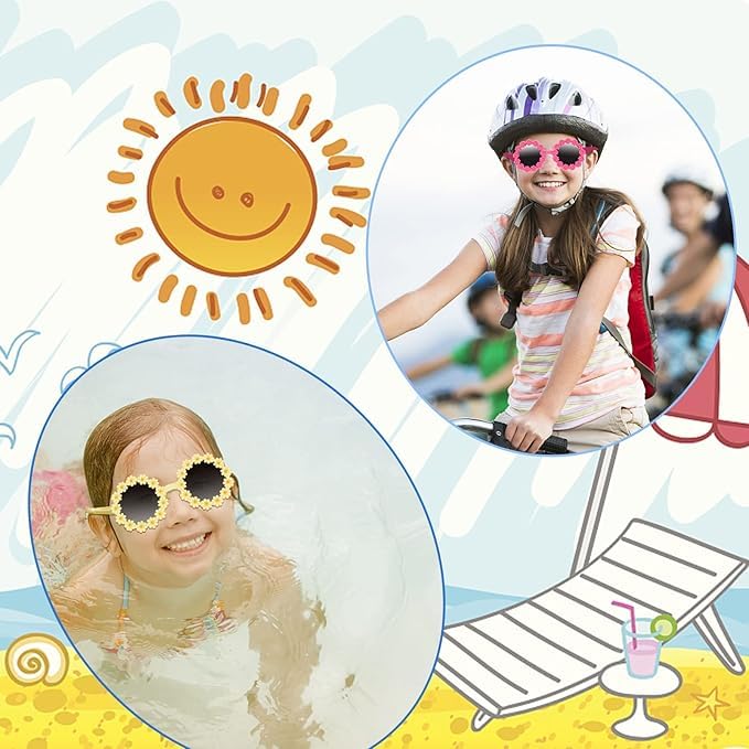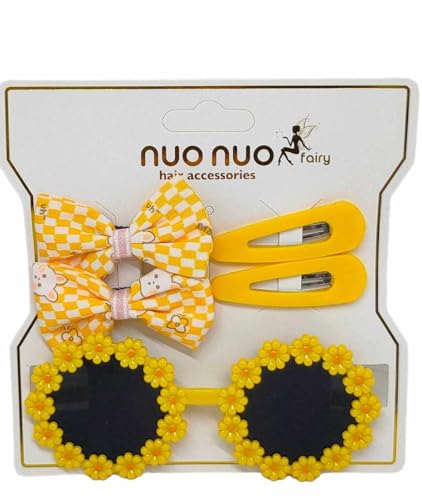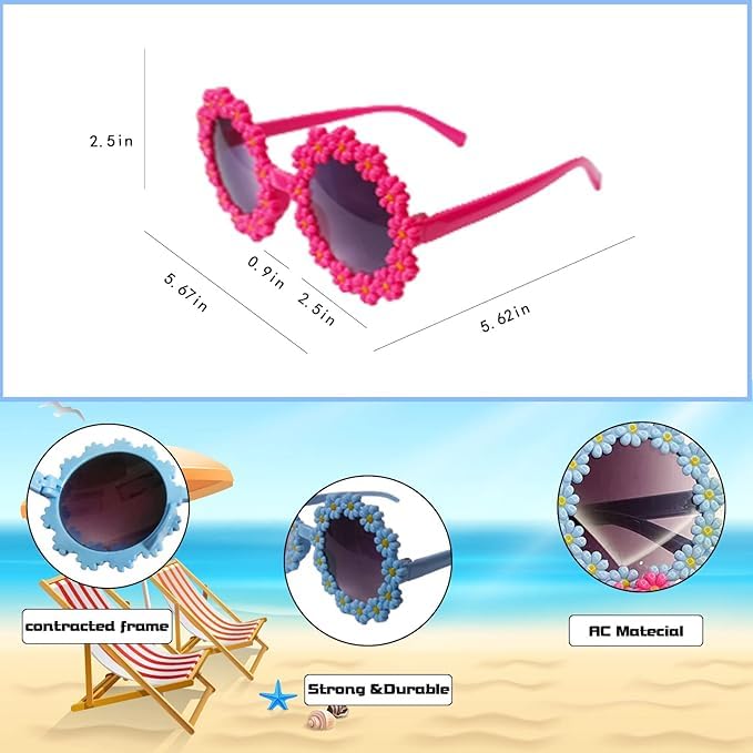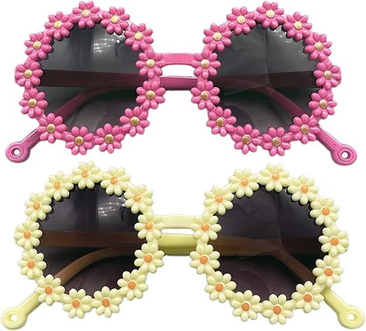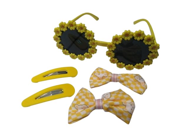 Generic - نظارة شمس دائرية بتصميم زهرة الأقحوان، نظارات دائرية لطيفة مع إطار على شكل زهرة الأقحوان + 4 مشابك شعر للبنات، مجموعة نظارات شمسية للأطفال