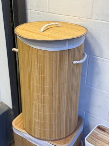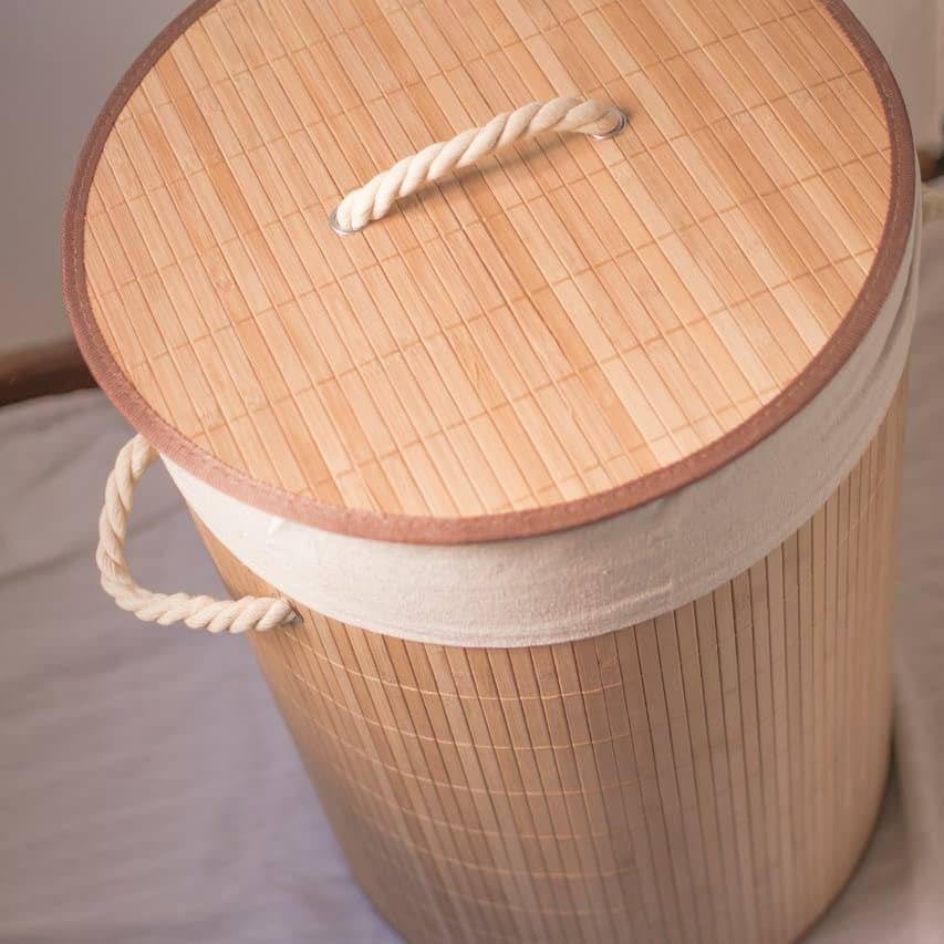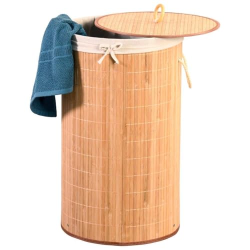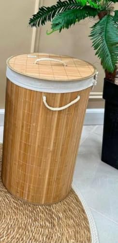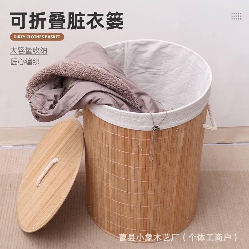Generic - سلة غسيل دائرية قابلة للطي من الخيزران الطبيعي مع غطاء، سلال غسيل للغسيل، سلال تخزين من الخوص، سلة ملابس، ديكور منزلي (طبيعي)