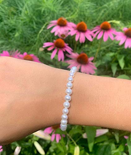 Blue Ocean Pearls - سوار دائري من اللؤلؤ المستزرع في المياه العذبة للعروس ووصيفة العروس مقاس 8 انش ايه - اختيار حجم ولون لؤلؤ غير معروف للنساء