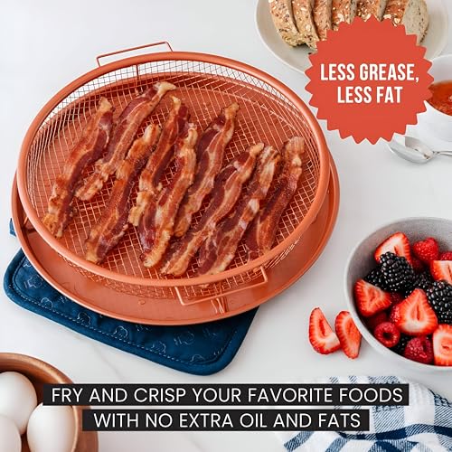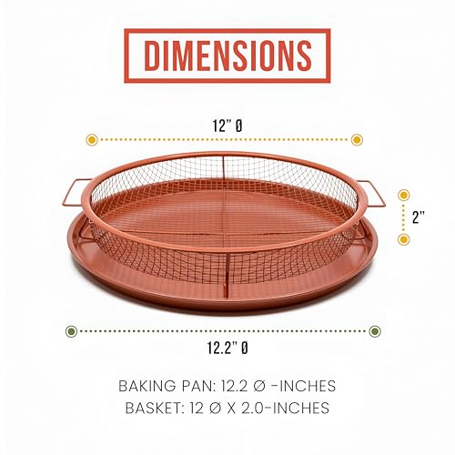 - قم بطهي وجبات كاملة في صينية قلي واحدة فقط. يتيح لك طقم صينية القلي الهوائية متعددة الاستخدامات هذه إعداد وصفاتك المفضلة، بما في ذلك السمك ورقائق البطاطس والدجاج والخضروات المحمصة وحتى البيتزا المنزلية. يدور الهواء الساخن بالتساوي داخل سلة التحميص، مما يضمن طهي جميع أطباقك بشكل مثالي في وقتٍ واحد. بالإضافة إلى ذلك، تعمل صينية الخبز النحاسية الموجودة أسفلها على جمع الفتات والقطرات، مما يحمي الفرن من التراكم اللزج والدخان.