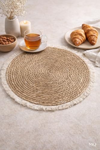 Generic - مفرش طاولة دائري من الجوت مع شراشيب، مفرش طاولة منسوج طبيعي، مقاوم للحرارة، قطر 38 سم، تصميم مضفر منسوج يدويا لطاولات الطعام والقهوة