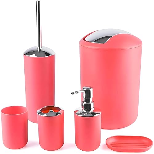 - تتضمن المجموعة المكونة من 6 قطع موزع صابون مقاوم للكسر وحامل فرشاة أسنان وسلة مهملات وحامل صابون وفرشاة تنظيف المرحاض وملحقات عملية.